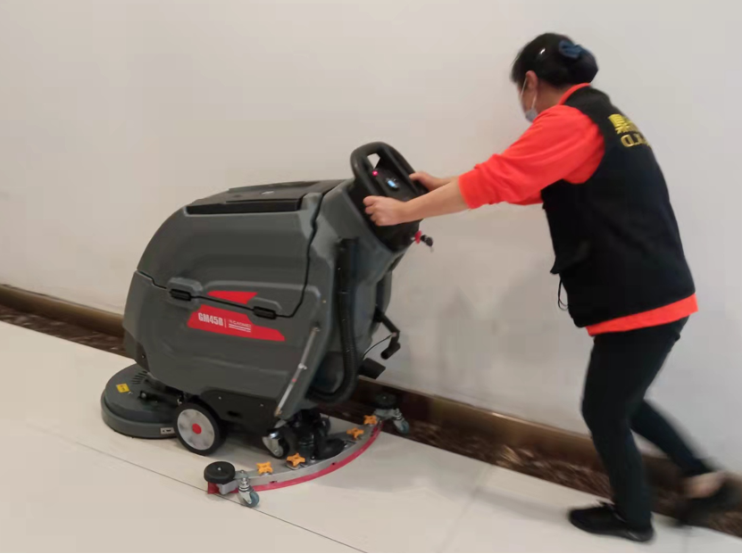 手推式洗地机:体积小、灵活轻便,适用于清洁狭窄处和角落区域的地面,快速吸干,避免滑倒,配合清洁剂和消毒剂,快速除异味和消毒。