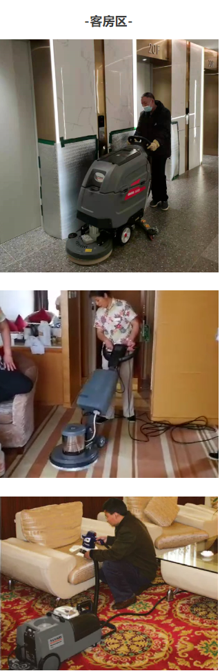 ● 设备:恒盛娱乐GM56B静音洗地机或者GM45B洗地机、FB-1517/MF-10中心出泡单刷机、M17/M12地毯干洗机、GMS-2干泡沙发清洗机、V20房务吸尘器